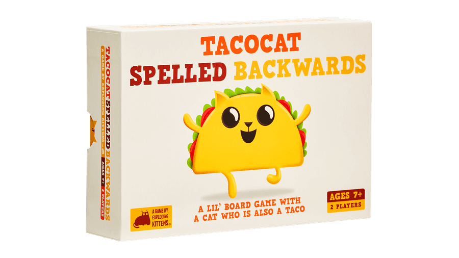 Tacocat Spelled Backwards is a fun balance of strategy, luck and instinct! With its portable open-and-play design, it's a perfect two player anytime, anywhere game; the box is the board, just open and play!